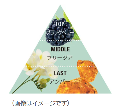 深みのあるブラックベリーに、やさしく香るフリージアを重ね、ラストはアンバーが包み込む、上品な甘さと透明感が調和した香調。